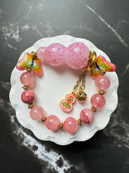 Orange HuLu Cat-eyes Glass Beads Bracelet